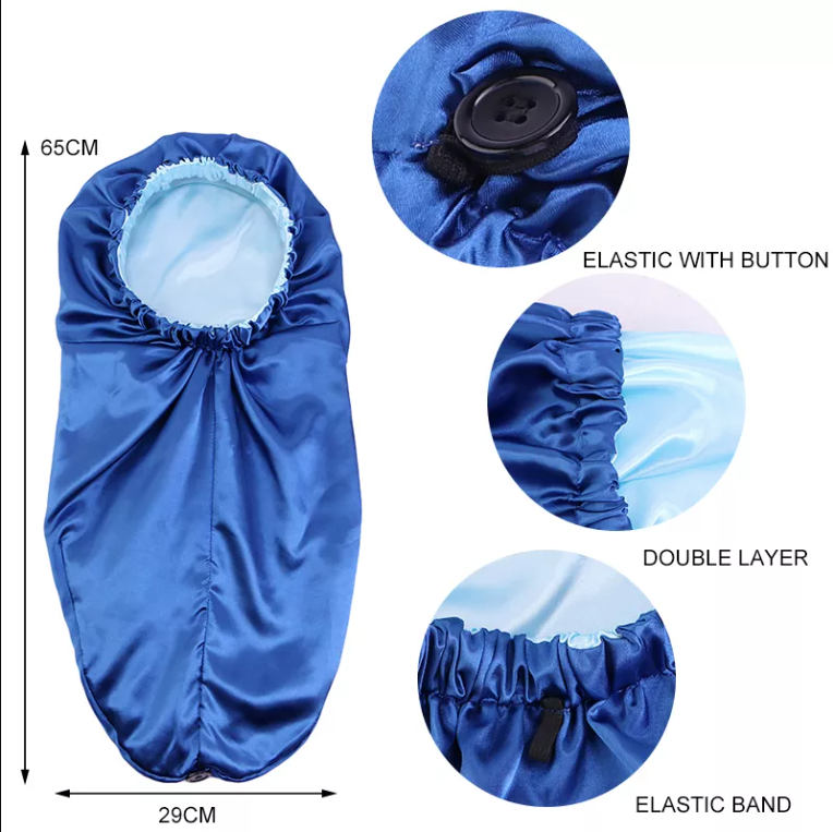 Sizing: Royal Crown Double Satin Purple Long Bonnet is One size fit all. The bonnet length is 65 cm and the width is 29 inches.